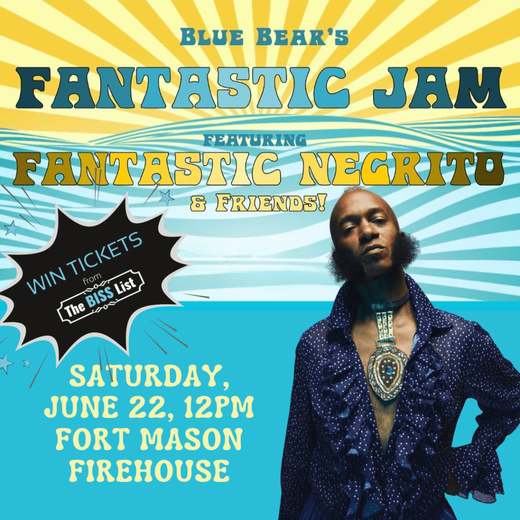 Join Fantastic Negrito and his fantastic friends at San Francisco’s Fort Mason Firehouse. Incredible live music at the most beautiful spot on earth, right on the SF bay! In addition to gorgeous views and awesome tunes, we’ll have delicious food and drinks, and a silent auction featuring unique finds and rare goodies! All funds raised support Blue Bear’s outreach programming and will bring FREE music education to kids throughout San Francisco!