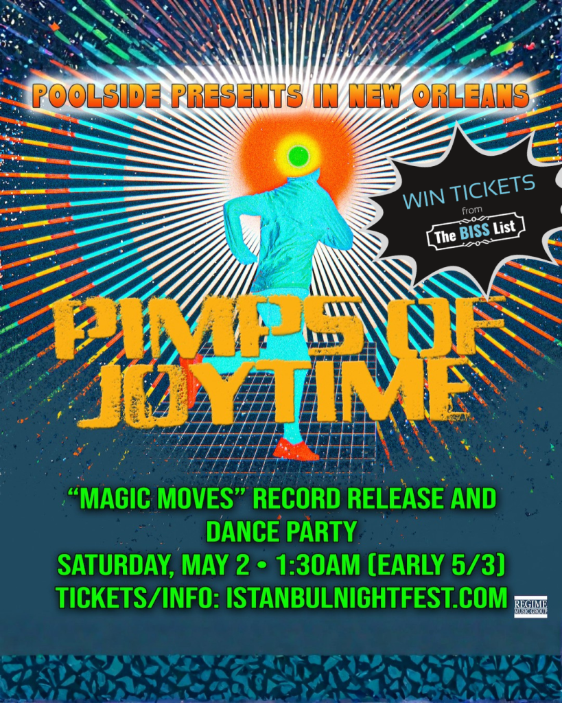 Late-night alert: **Pimps Of Joytime** bring their only club appearance of Jazz Fest Week 2 to New Orleans for a 1:30am dance party celebrating the release of *Magic Moves* (technically early Sunday, 5/3). Known for blending Brooklyn beat, New Orleans soul, and global funk, the Pimps deliver a high-energy, sweat-it-out groove that’s equal parts swagger and musicianship. Catch this late, loud, and joyous release party at **Cafe Istanbul** with special guests and zero chill.