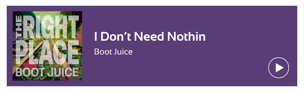 Listen to “I Don’t Need Nothin” by Boot Juice from the album The Right Place (Released 2023).