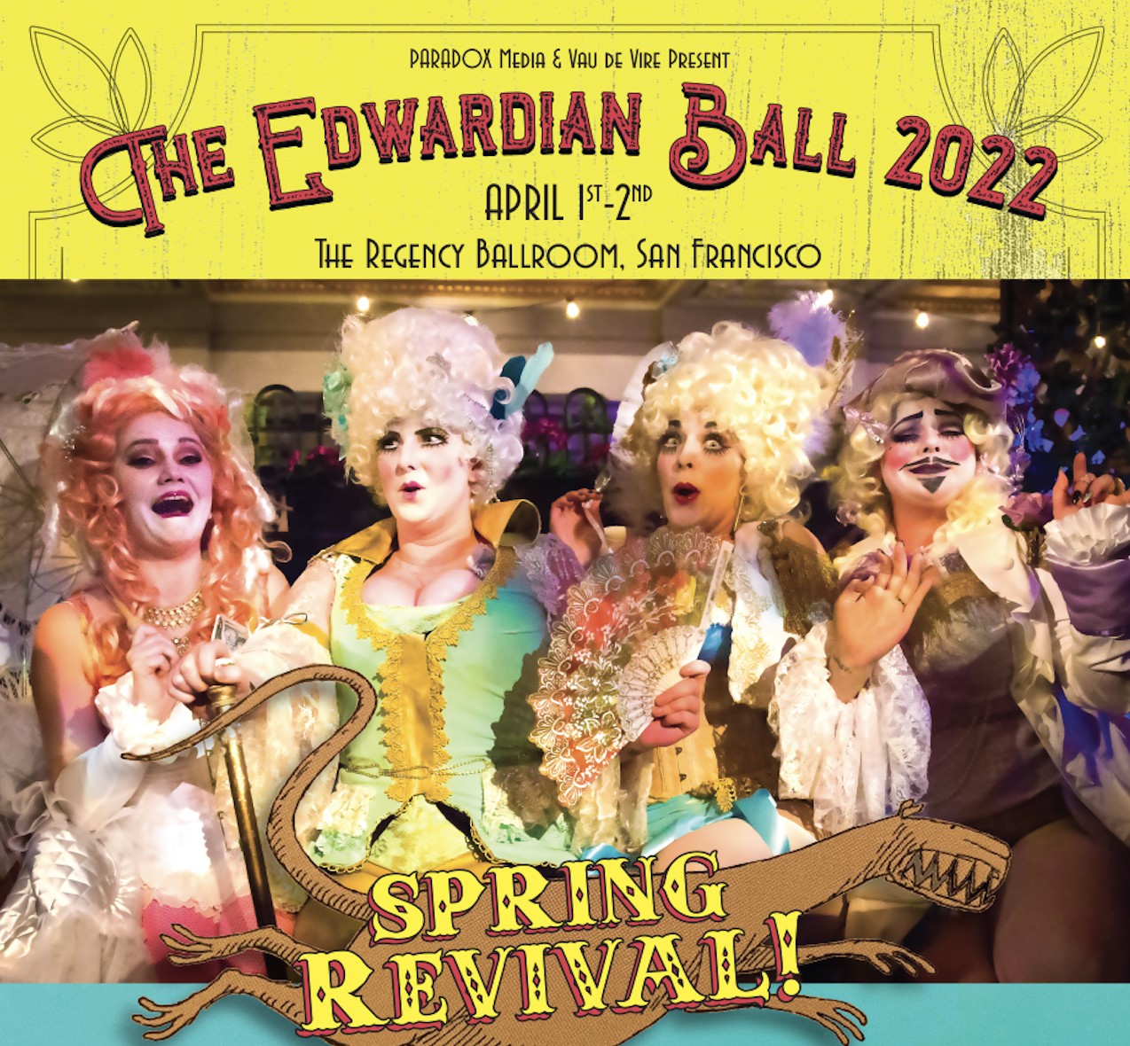 The Edwardian Ball presented by PARADOX Media & Vau de Vire is an elegant and whimsical celebration of fine art, music, circus, theatre, fashion, literature, ballroom dancing, DJs, oddities, and the beloved tales of author Edward Gorey. Set in a romantically reimagined Edwardian-era, the Ball celebrates its 21st Anniversary in a thriving, two-night blend of subculture and participant created revelry, described by the SF Weekly as “the quintessential must-never-miss event of the year.” New this year: Both nights are THE Ball, 50% capacity, all tickets include all-access, fully vaccinated event. ALL Ages. April 1 & 2, 2022. Vendor Bazaar with Daytime Shopping Sat, April 2, 12 – 5pm ~ free!